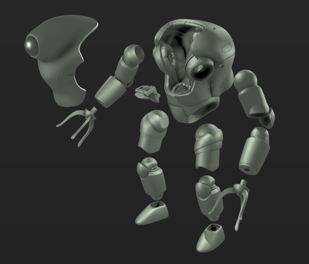 Separated limb sections with spherical joints to make more dynamic or "in flight" poses. Parts aren't keyed (for freedome in posing) and are to be glued in place.
